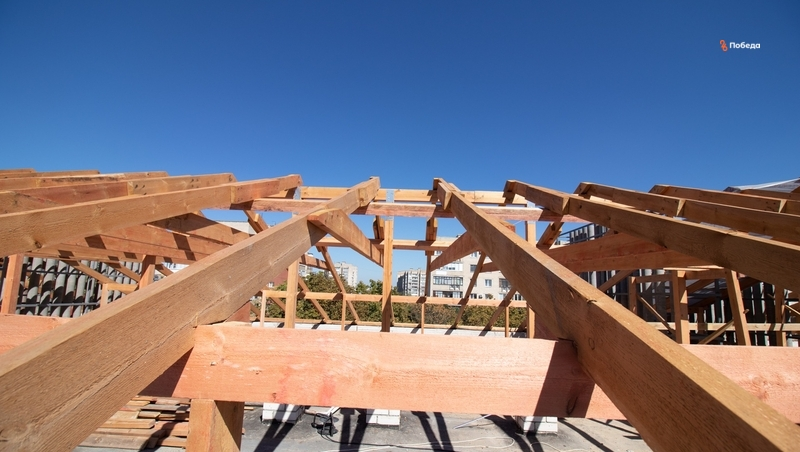 На данный же момент на объекте уже сняли старую крышу и провели устройство стропильной системы, а также закончили пароизоляцию. Объём работ составил 1 470 квадратных метров.